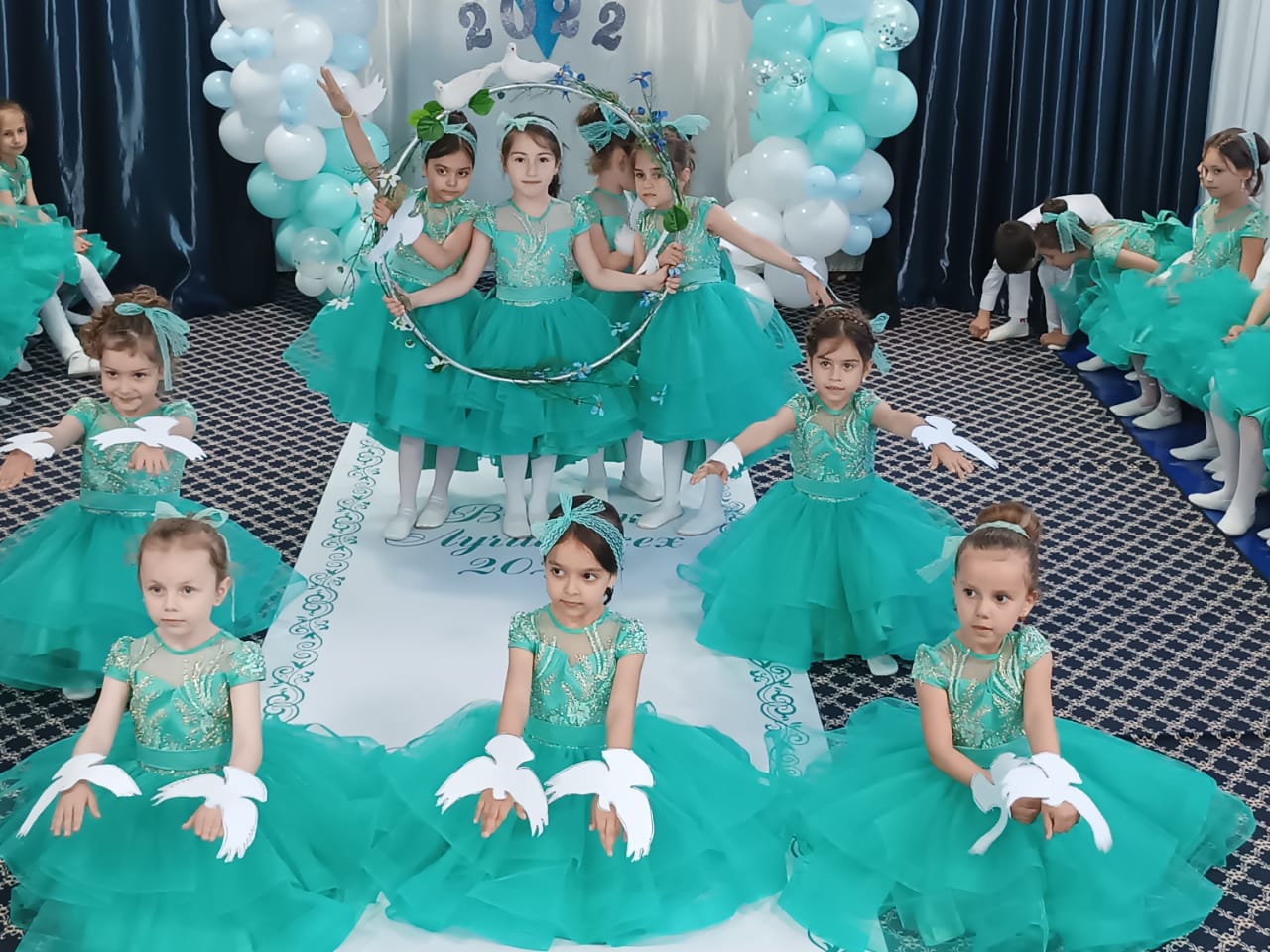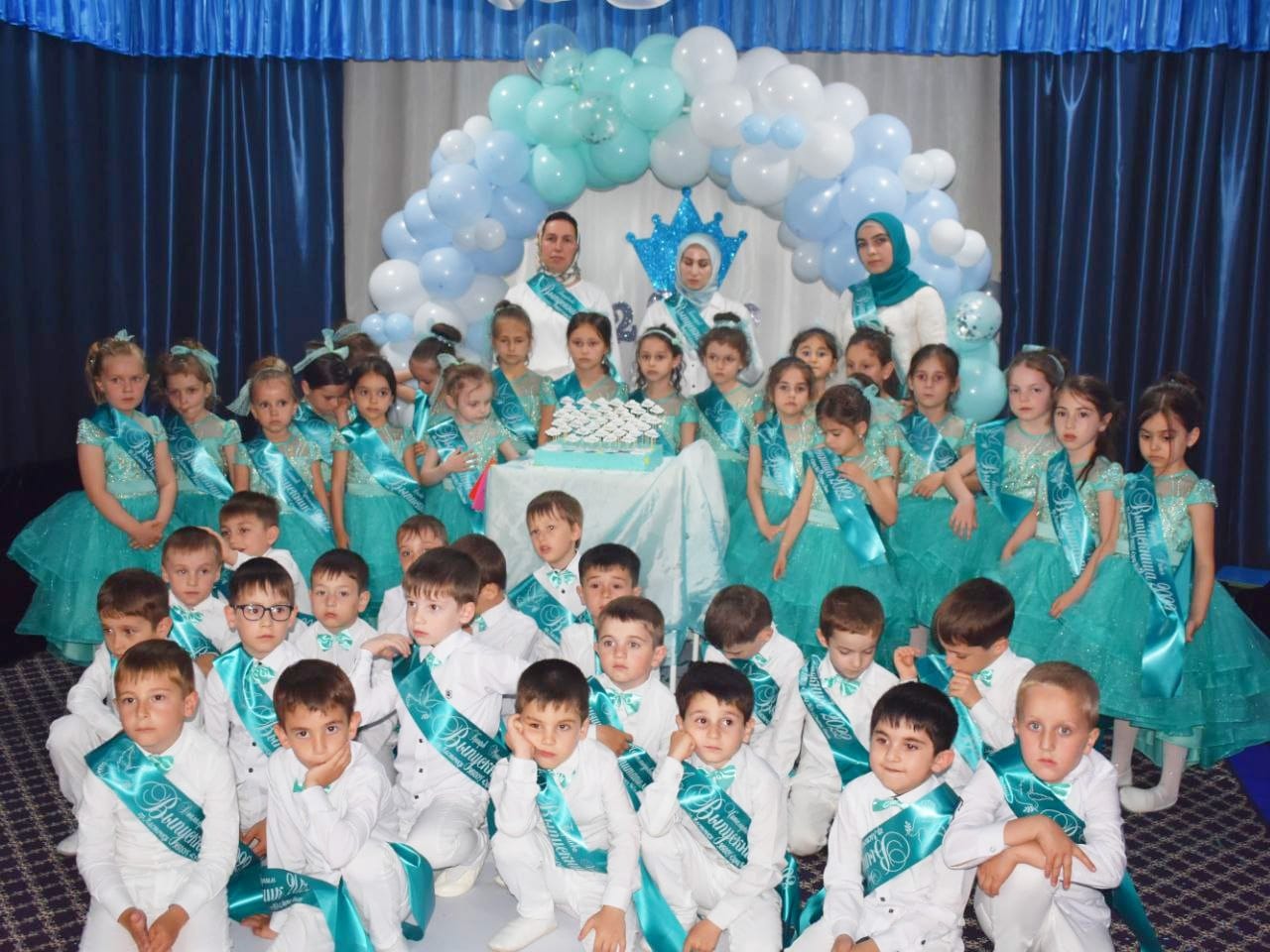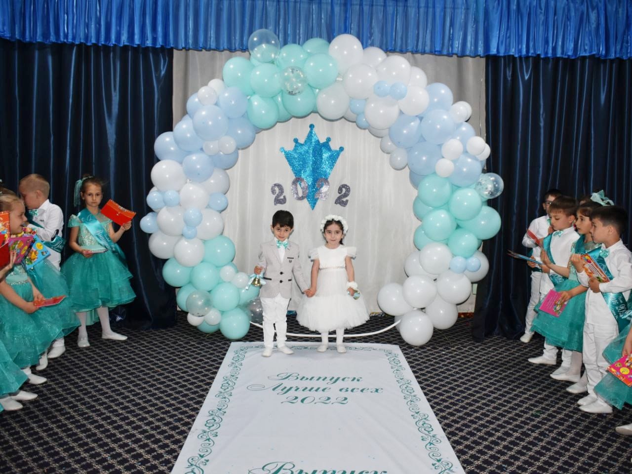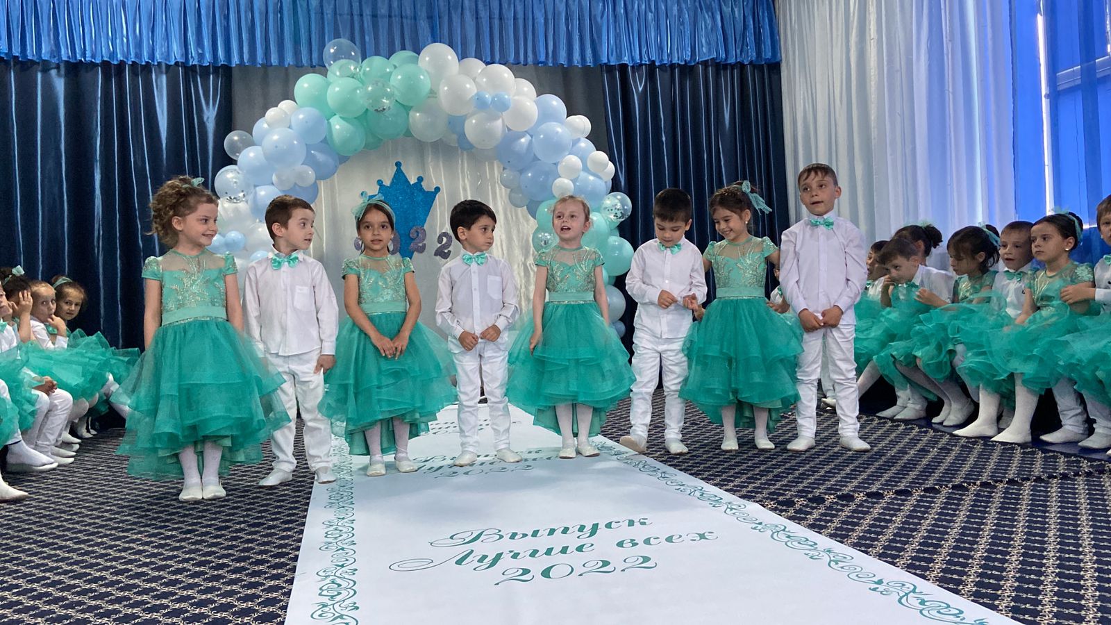 Это расставание, грусть, добрые напутствия. Выпускной бал — символ окончания прекрасной садиковской поры. И этот праздник должен остаться в памяти выпускников навсегда. Выпускной в детском саду – очень важный праздник для детей и их родителей. Он приходит совершенно неожиданно. Казалось бы, только вчера Вы привели своих малышей, а сегодня уже пора прощаться с этим уютным местом, которое стало для детишек настоящим вторым домом. 25 мая в нашем детском саду прошли выпускные утренники! Сценарии утренников были написаны воспитателями и музыкальным работником. Подготовка к выпускному утреннику была очень волнительной и ответственной. Оформляя зал, педагоги стремились показать, как выросли наши дети: от первых неуверенных шагов до первого выпускного бала, которое было представлено на презентации. Были на празднике и песни, и танцы, игры и подарки. Праздник в группе «Ласточки» прошел в стиле «ретро». Белоснежные рубашки и бирюзовые бабочки у мальчиков, платья с пышными юбками бирюзового цвета у девочек, вернули всех во время стиляг.