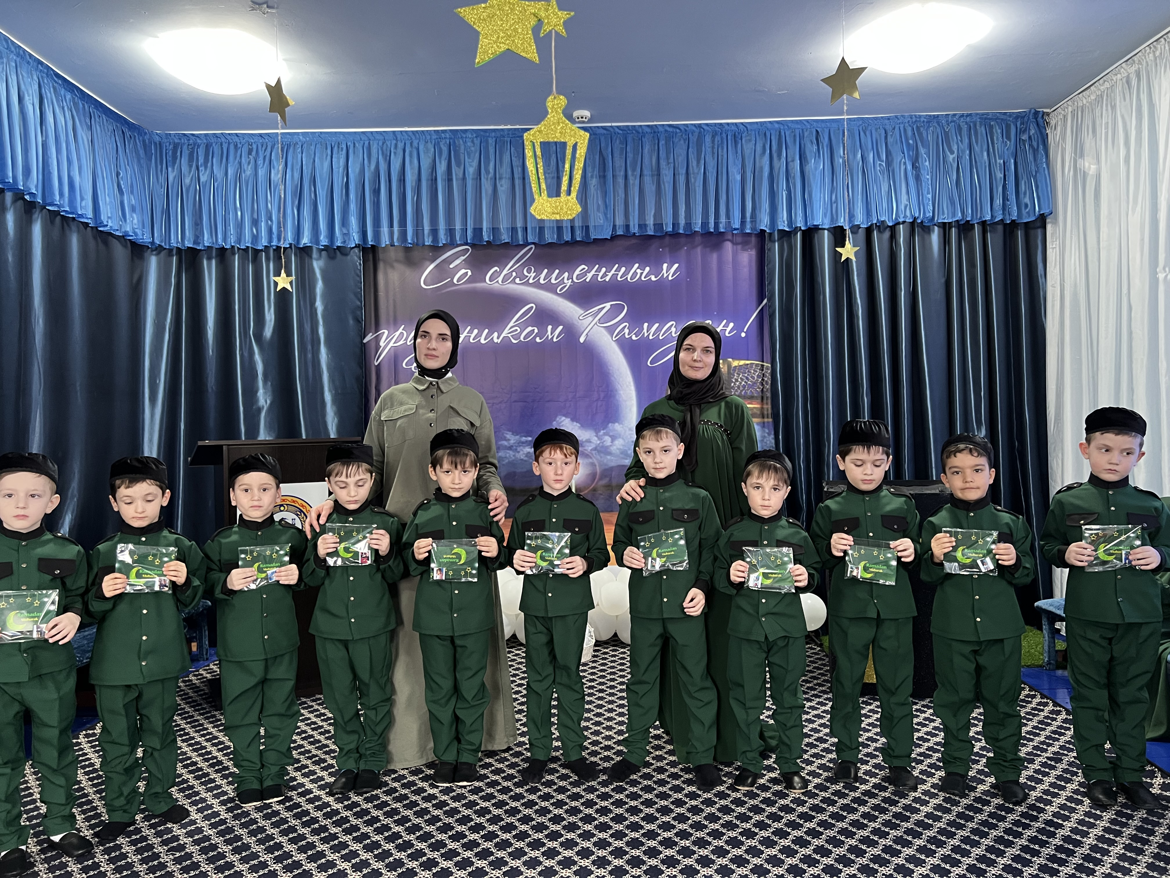 С целью духовно – нравственного воспитания и знакомства с традициями чеченского народа в МБДОУ «Детский сад №1 «Сказка» с. Старые Атаги» 21.03.2023г. прошло мероприятие, посвященное священному месяцу Рамадан «Марша ба хьо, Рамадан бутт!», с участием воспитанников старших групп «Веселые утята» и «Бабочки». В течение недели воспитатели вместе с детьми заучивали нашиды, возвеличивающие месяц Рамадан, суры из священного Корана. На празднике дети с особой радостью зачитали их. Невозможно описать насколько приятно и радостно слышать нашиды и суры из уст таких маленьких детей! Воспитанники прочитали «Хьехамаш» на родном языке, в которых говорилось о ценности и значимости праздника, также, воспитанники старшей группы показали свои знания в религии ислама, показали, что знают все традиции проведения мусульманского праздника. В конце мероприятия воспитатели групп поздравили всех с наступлением священного месяца Рамадан и подарили детям и всему коллективу памятные подарки.