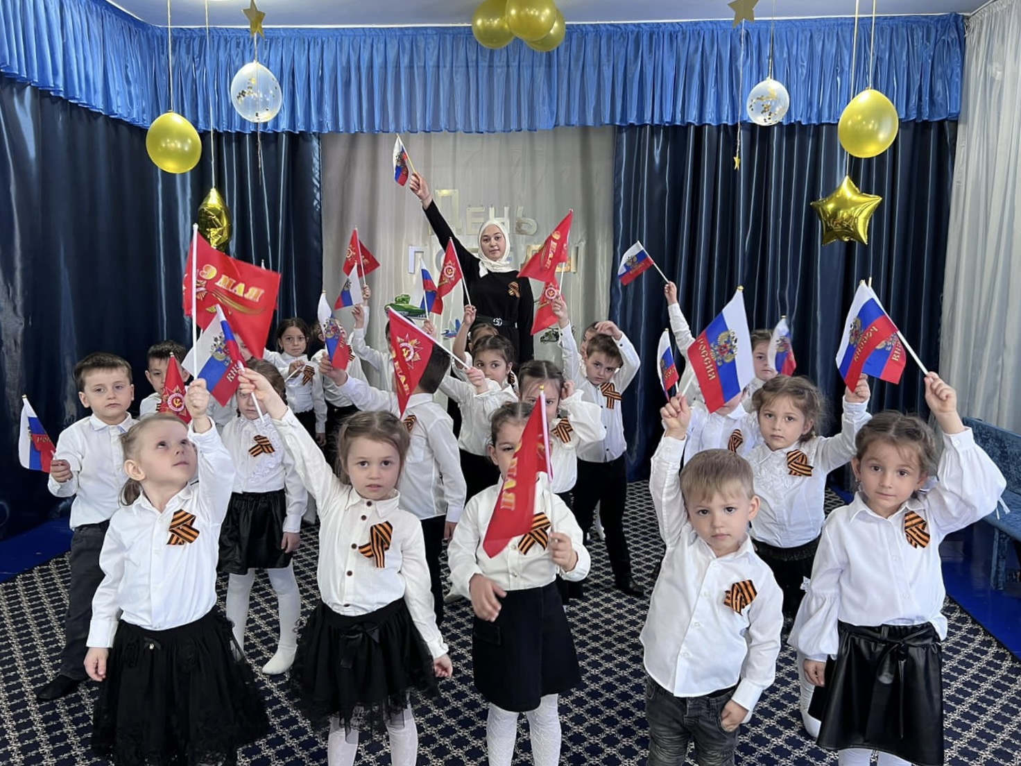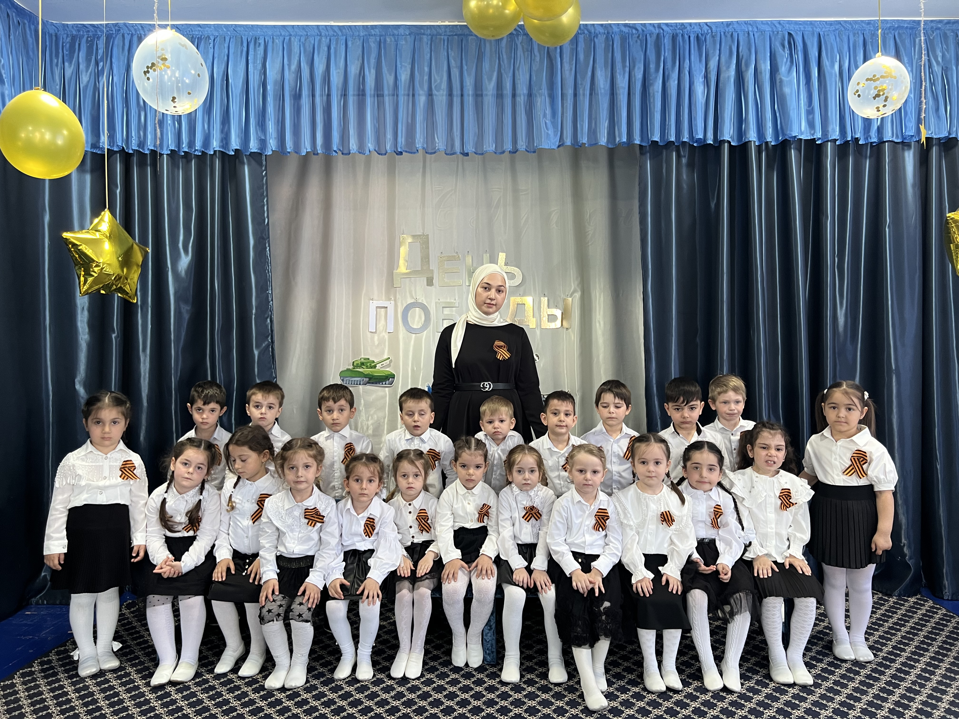 05.05.2023г. в ДОУ в средней группе «Непоседы» прошло мероприятие, посвященное празднованию Дня Победы. Дети читали стихи, пели песни и исполнили танец.
