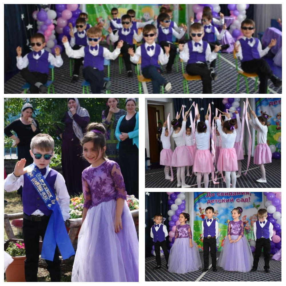 Это расставание, грусть, добрые напутствия. Выпускной бал — символ окончания прекрасной садиковской поры. И этот праздник должен остаться в памяти выпускников навсегда. Выпускной в детском саду – очень важный праздник для детей и их родителей. Он приходит совершенно неожиданно. Казалось бы, только вчера Вы привели своих малышей, а сегодня уже пора прощаться с этим уютным местом, которое стало для детишек настоящим вторым домом. С 29 по 31 мая в нашем детском саду прошли выпускные утренники! Сценарии утренников были написаны воспитателями и музыкальным работником. Подготовка к выпускному утреннику была очень волнительной и ответственной. Оформляя зал, педагоги стремились показать, как выросли наши дети: от первых неуверенных шагов до первого выпускного бала, которое было представлено на презентации. Были на празднике и песни, и танцы, игры и подарки. Праздник в группе «Звездочки» прошёл в стиле «ретро». Яркие рубашки и галстуки у мальчиков, платья с пышными юбками у девочек вернули всех во время стиляг. Мальчики группы «Непоседы» были одеты в классическом стиле, а девочки – в длинные бальные платья в пол. Зажигательные танцы «Буги-вуги» и «Рок-н-рол» с первых аккордов сопровождались аплодисментами зрителей. Преодолев все препятствия, ребята получили в награду подарки и дипломы выпускников. Завершился выпускной праздник прощальным вальсом и заключительной песней «До свидания, детский сад!» Наши дети попрощались с детским садом и готовятся к новому жизненному этапу – поступлению в школу. Позади остались дни, наполненные увлекательными путешествиями в мир непознанных, неразгаданных, удивительных открытий. Впереди непростая дорога в мир взрослой школьной жизни. Каждый год наш детский сад выпускает в школу не простых дошколят, а самых настоящих талантливых и замечательных звезд. Каждый ребенок в группе – маленькая звездочка. Каждый талантлив и неповторим. Мы полюбили их за годы прожитые вместе. И сегодня с гордостью и надеждой, грустью отпускаем их в школу. Традиционно в конце праздника детей с окончанием детского сада поздравила заведующий ДОУ М.Х. Читамирова, вручила дипломы и подарки. Ах, сколько раз в просторном зале Мы с вами праздники встречали! Но этот ждали столько лет!!! И вот настал торжественный момент! Мы наших милых малышей Сегодня в школу провожаем! Добра и счастья им желаем! Дорогу школьникам скорей!